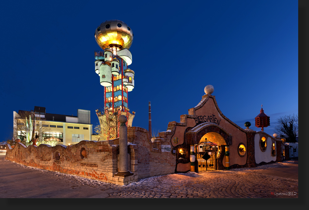 Künstlers Friedensreich Hundertwasser geplant geändert und bearbeitet von Architekt Peter Pelikan. Zu Besichtigen nur im Zusammenhang mit einer BrauereiFührung. Neben dem Turm gibt es auch noch ein KunstHaus im Stil von.