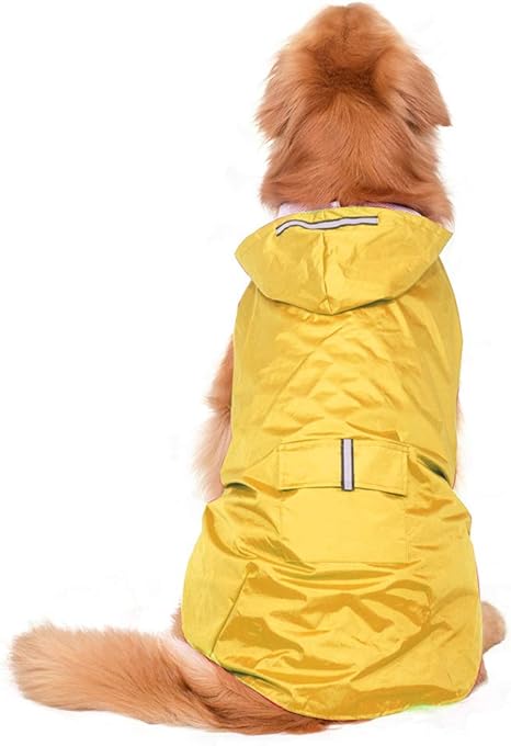 Dociote Hunderegenmantel Hunde Regenjacke Wasserdicht Mit Kapuze Bauchschutz Fur Kleine Mitelgrosse Grosse Hunde 2xl Gelb Amazon De Haustier