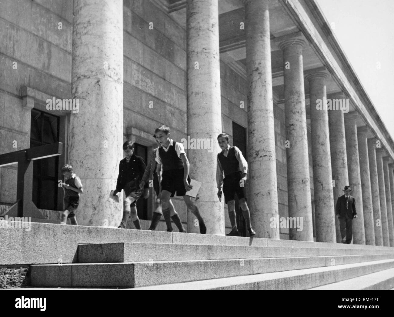 A Group Of Students And Their Teacher Visit The Haus Der Deutschen Kunst House Of German Art Which Is Still Undergoing Construction Work Before Its Completion Stock Photo Alamy