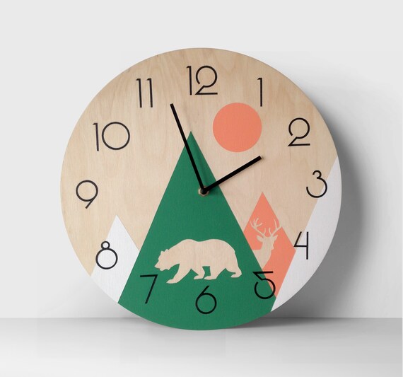 Berge Wanduhr Personalisierte Holzwerk Tier Wanduhr Kinder Etsy