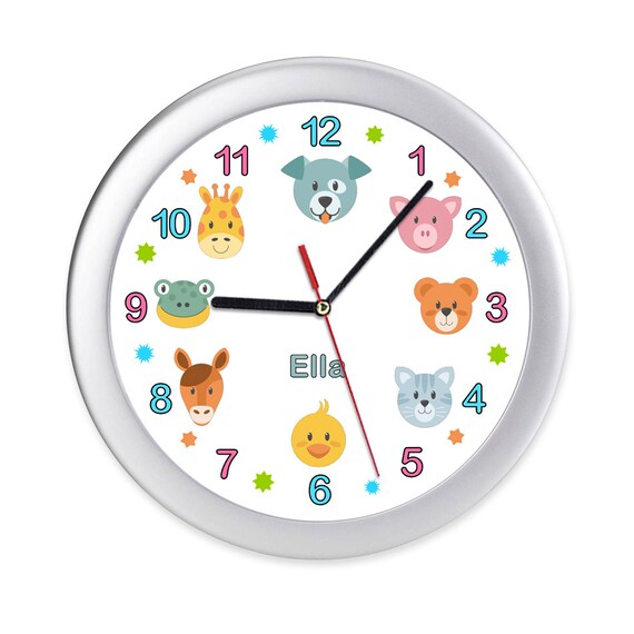 Kinder Wanduhr Lernuhr 12 Tiere Kinderuhr Kinderzimmer Uhr Etsy