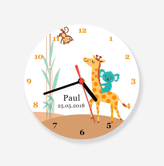 Wanduhr Tiere Giraffe Kinderuhr Mit Namen Kinderzimmer Uhr Etsy