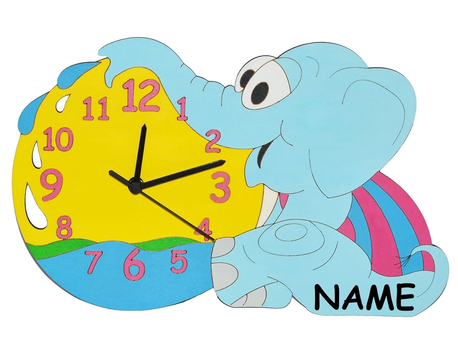 Kinder Wanduhr Mit Namen Und Elefant Flusterlaufwerk Duetori