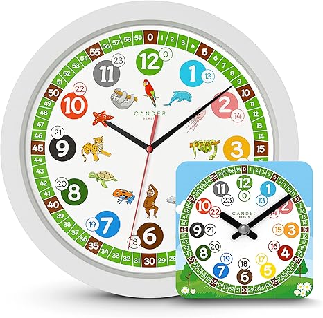 Unser Sortiment an Kinderzimmer Wanduhren. Größere Kinder sind dagegen in der Lage mithilfe ihrer Kinderzimmer-Uhr selbstständig die Uhrzeit abzulesen. TFA Dostmann LITTLE ANIMALS Kinder-Wanduhr mit Tier-Motiven leises Uhrwerk ideal für das Kinderzimmer Kunststoff hellblau L 309 x B 44 x H 309 mm Cander Berlin MNU 1435 Kinderwanduhr Ø 345 cm Kinder Wanduhr lautlos mit Tiergeräuschen Tierstimmen und Lichtsensor.
