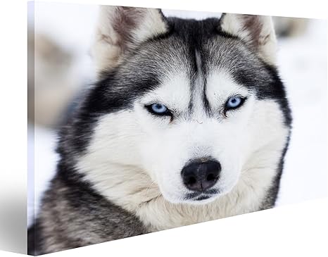 Amazon De Islandburner Bild Bilder Auf Leinwand Toller Husky Hund Mit Blauen Augen Poster