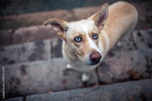 Portait Von Einem Mischling Hund Im Herbst Hund Mit Blauen Augen Rescue Dog Im Park Wall Mural Lichtflutphoto