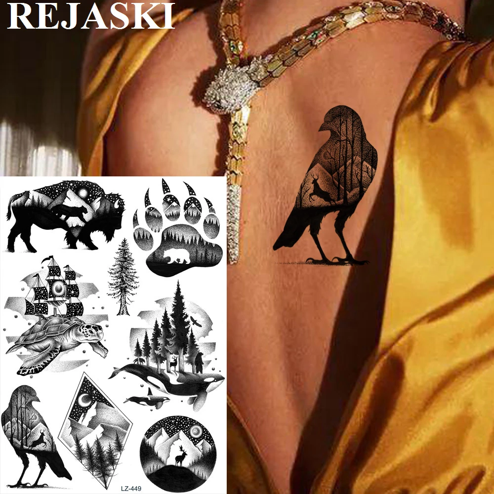 Rejaski Tiere Vogel Pfote Temporare Tattoos Fur Frauen Manner Aufkleber Delphin Berg Wald Gefalschte Tatoos Korper Arm Realistische Tattoo Temporary Tattoos Aliexpress