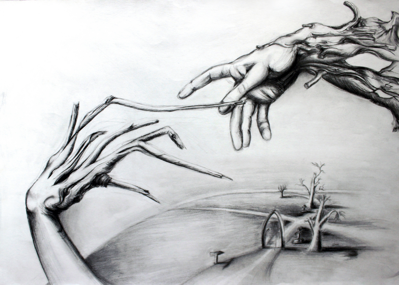 Surreale Handzeichnung Erschaffung Der Welt Foto Bild Korperdetails Hande Kunst Bilder Auf Fotocommunity