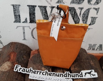 Neue selbst genähte Leckerli Tasche mit Schlaufen aus Kunstleder für einen Gürtel. HUND IST KÖNIG Magnet-Futtertasche. Sie hat eine Maße ohne Kordelzug.