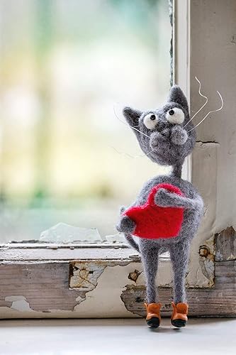Gefilzte Katze Kunst Puppe Nadel Filzen Tier Wolle Skulptur Miniatur Puppe Umweltfreundliche Valentine Katze Figur Lustige Katze Figur Amazon De Handmade